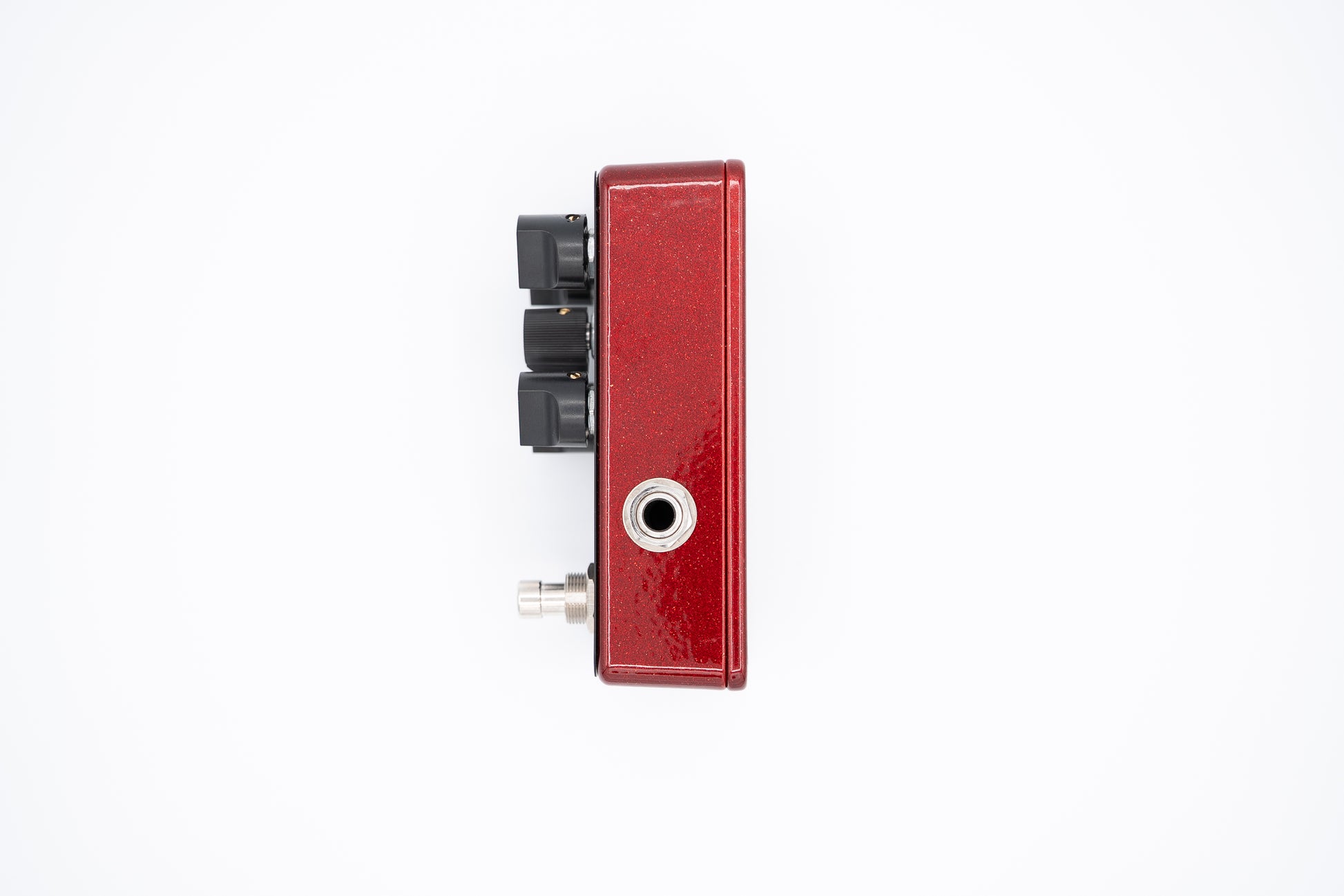 The Forte Fatale is equipped with USA made Switchcraft jacks for reliable operation, and our tried and true click-less bypass system. This circuit allows for easy and silent effect switching, but also momentary operation for when you just need a little. Note: momentary function is set to off on the Forte Fatale from the factory. The momentary function is available to turn on via the single internal dip switch.
